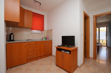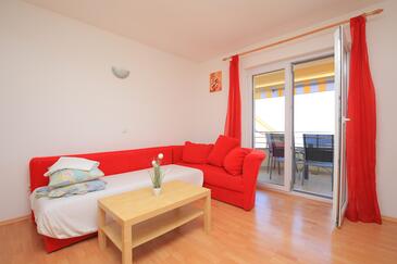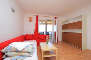 Ferienwohnung bietet Platz für 5 Gäste. Die Betten sind in Schlafzimmern, die es 1 gibt, und in Wohnzimmer, innerhalb einer Gesamtfläche von 35m2, angeordnet. Die Gäste haben einen eigenen Balkon zur Verfügung, auf der sie in warmen Sommernächten genießen können. Es ist erlaubt, Speisen auf dem Gemeinschafts-Grill vorzubereiten. In der Unterkunftseinheit besteht die Möglichkeit des Mitbringens von Haustieren, und die Dienstleistung ist im Preis der Unterkunft enthalten.