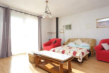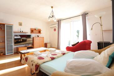 Ferienwohnung bietet Platz für 4 Gäste. Die Betten sind in Schlafzimmern, die es 1 gibt, und in Wohnzimmer, innerhalb einer Gesamtfläche von 36m2, angeordnet. Die Gäste haben eine eigene Terrasse zur Verfügung, auf der sie in warmen Sommernächten genießen können. Das Apartment bietet Meerblick.