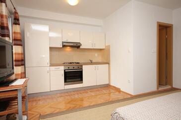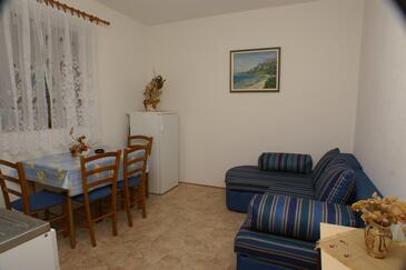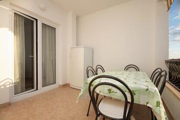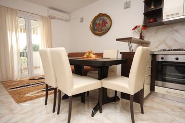 Ferienwohnung bietet Platz für 4 Gäste. Die Betten sind in Schlafzimmern, die es 2 gibt, innerhalb einer Gesamtfläche von 49m2, angeordnet. Die Gäste haben eine eigene Terrasse zur Verfügung, auf der sie in warmen Sommernächten genießen können. Das Apartment bietet Meerblick. Es ist erlaubt, Speisen auf dem Gemeinschafts-Grill vorzubereiten.