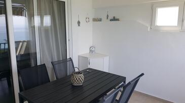Ferienwohnung bietet Platz für 6 Gäste. Die Betten sind in Schlafzimmern, die es 2 gibt, und in Wohnzimmer, innerhalb einer Gesamtfläche von 52m2, angeordnet. Die Gäste haben eine eigene Terrasse zur Verfügung, auf der sie in warmen Sommernächten genießen können. Das Apartment bietet Meerblick. Es ist erlaubt, Speisen auf dem Gemeinschafts-Grill vorzubereiten.