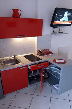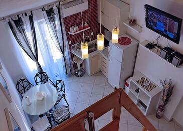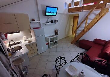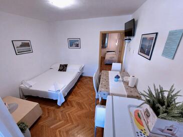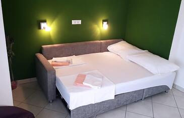 Ferienwohnung bietet Platz für 4 Gäste. Die Betten sind in Schlafzimmern, die es 1 gibt, und in Wohnzimmer, innerhalb einer Gesamtfläche von 34m2, angeordnet. Die Gäste haben eine eigene Terrasse zur Verfügung, auf der sie in warmen Sommernächten genießen können. Das Apartment bietet Meerblick.
