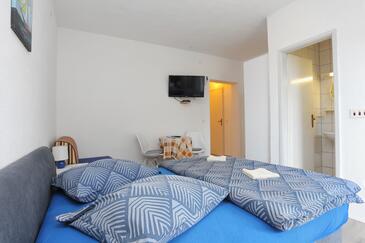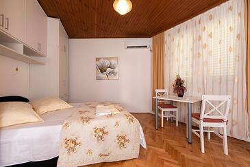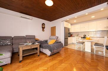 Ferienwohnung bietet Platz für 5 Gäste. Die Betten sind in Schlafzimmern, die es 1 gibt, und in Wohnzimmer, innerhalb einer Gesamtfläche von 59m2, angeordnet. Die Gäste haben einen eigenen Balkon zur Verfügung, auf der sie in warmen Sommernächten genießen können. Das Apartment bietet Meerblick. Es ist erlaubt, Speisen auf dem Gemeinschafts-Grill vorzubereiten.
