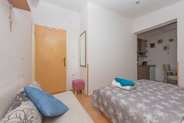 Ferienwohnung bietet Platz für 4 Gäste. Die Betten sind in Schlafzimmern, die es 1 gibt, und in Wohnzimmer, innerhalb einer Gesamtfläche von 46m2, angeordnet. Die Gäste haben einen eigenen Balkon zur Verfügung, auf der sie in warmen Sommernächten genießen können. Das Apartment bietet Meerblick. Es ist erlaubt, Speisen auf dem Gemeinschafts-Grill vorzubereiten.