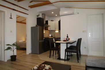 Haus bietet Platz für 8 Gäste. Die Betten sind in Schlafzimmern, die es 3 gibt, und in Wohnzimmer, innerhalb einer Gesamtfläche von 67m2, angeordnet. Die Gäste haben eine eigene Terrasse zur Verfügung, auf der sie in warmen Sommernächten genießen können. Für vollen Genuss und Entspannung gibt es einen privaten Grill für Gäste dieser Unterkunft. Während ihres Aufenthalts können sich Gäste im privaten Schwimmbad entspannen. In der Unterkunftseinheit besteht die Möglichkeit des Mitbringens von Haustieren gegen Aufpreis.