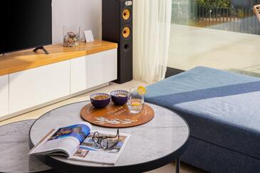 Haus bietet Platz für 8 Gäste. Die Betten sind in Schlafzimmern, die es 3 gibt, und in Wohnzimmer, innerhalb einer Gesamtfläche von 122m2, angeordnet. Die Gäste haben eine eigene Terrasse zur Verfügung, auf der sie in warmen Sommernächten genießen können. Das Haus bietet Meerblick. Für vollen Genuss und Entspannung gibt es einen privaten Grill für Gäste dieser Unterkunft. Während ihres Aufenthalts können sich Gäste im privaten Schwimmbad entspannen. In der Unterkunftseinheit besteht die Möglichkeit des Mitbringens von Haustieren, und die Dienstleistung ist im Preis der Unterkunft enthalten. In der gebuchten Unterkunftseinheit zahlt man am Ort ein Depositum ( der Preis ist an der Internetseite angeführt ).