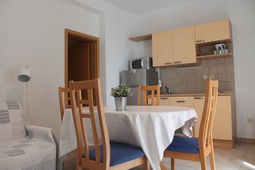 Ferienwohnung bietet Platz für 4 Gäste. Die Betten sind in Schlafzimmern, die es 1 gibt, und in Esszimmer, innerhalb einer Gesamtfläche von 33m2, angeordnet. Die Gäste haben eine eigene Terrasse zur Verfügung, auf der sie in warmen Sommernächten genießen können. Das Apartment bietet Meerblick. Es ist erlaubt, Speisen auf dem Gemeinschafts-Grill vorzubereiten. In der Unterkunftseinheit besteht die Möglichkeit des Mitbringens von Haustieren, und die Dienstleistung ist im Preis der Unterkunft enthalten.