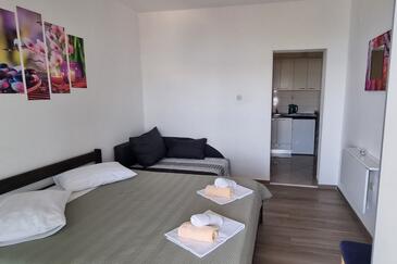 Ferienwohnung bietet Platz für 3 Gäste. Die Betten sind in Schlafzimmern, die es 1 gibt, innerhalb einer Gesamtfläche von 32m2, angeordnet. Die Gäste haben einen eigenen Balkon zur Verfügung, auf der sie in warmen Sommernächten genießen können. Das Apartment bietet Meerblick. Es ist erlaubt, Speisen auf dem Gemeinschafts-Grill vorzubereiten. In der Unterkunftseinheit besteht die Möglichkeit des Mitbringens von Haustieren gegen Aufpreis.