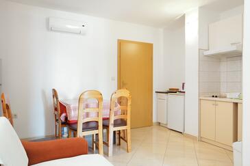 Ferienwohnung bietet Platz für 4 Gäste. Die Betten sind in Schlafzimmern, die es 1 gibt, innerhalb einer Gesamtfläche von 29m2, angeordnet. Die Gäste haben einen eigenen Balkon zur Verfügung, auf der sie in warmen Sommernächten genießen können. Das Apartment bietet Meerblick. Es ist erlaubt, Speisen auf dem Gemeinschafts-Grill vorzubereiten.