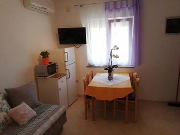 Ferienwohnung bietet Platz für 3 Gäste. Die Betten sind in Schlafzimmern, die es 1 gibt, und in Wohnzimmer, innerhalb einer Gesamtfläche von 34m2, angeordnet. Die Gäste haben eine eigene Terrasse zur Verfügung, auf der sie in warmen Sommernächten genießen können. Es ist erlaubt, Speisen auf dem Gemeinschafts-Grill vorzubereiten.