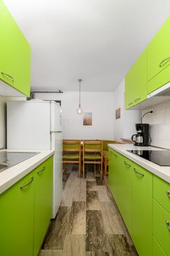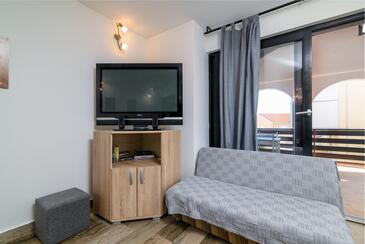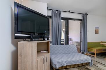 Ferienwohnung bietet Platz für 5 Gäste. Die Betten sind in Schlafzimmern, die es 2 gibt, und in Wohnzimmer, innerhalb einer Gesamtfläche von 47m2, angeordnet. Die Gäste haben eine eigene Terrasse zur Verfügung, auf der sie in warmen Sommernächten genießen können. Es ist erlaubt, Speisen auf dem Gemeinschafts-Grill vorzubereiten. In der Unterkunftseinheit besteht die Möglichkeit des Mitbringens von Haustieren gegen Aufpreis.