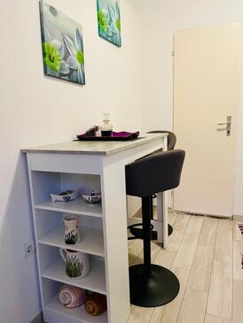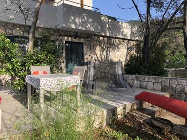 Ferienwohnung bietet Platz für 4 Gäste. Die Betten sind in Schlafzimmern, die es 2 gibt, innerhalb einer Gesamtfläche von 41m2, angeordnet. Die Gäste haben eine eigene Terrasse zur Verfügung, auf der sie in warmen Sommernächten genießen können. Das Apartment bietet Meerblick. Es ist erlaubt, Speisen auf dem Gemeinschafts-Grill vorzubereiten.
