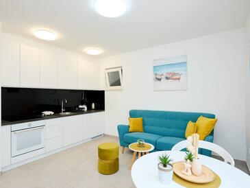 Ferienwohnung bietet Platz für 2 Gäste. Die Betten sind in Schlafzimmern, die es 1 gibt, innerhalb einer Gesamtfläche von 38m2, angeordnet. Die Gäste haben einen eigenen Balkon zur Verfügung, auf der sie in warmen Sommernächten genießen können. Das Apartment bietet Meerblick.
