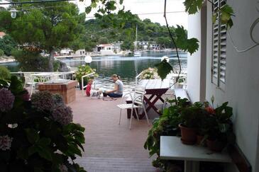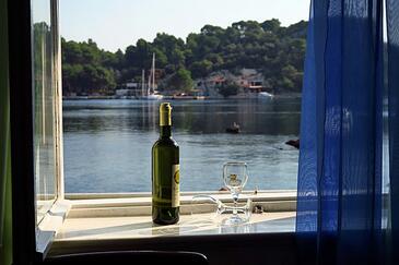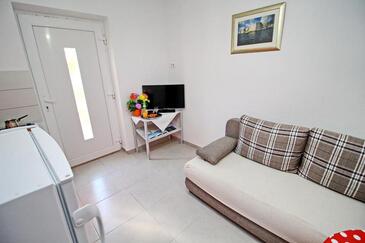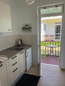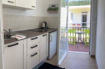 Ferienwohnung bietet Platz für 2 Gäste. Die Betten sind in Schlafzimmern, die es 1 gibt, innerhalb einer Gesamtfläche von 32m2, angeordnet. Die Gäste haben eine eigene Terrasse zur Verfügung, auf der sie in warmen Sommernächten genießen können. Das Apartment bietet Meerblick. Es ist erlaubt, Speisen auf dem Gemeinschafts-Grill vorzubereiten.