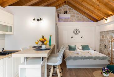 Studio bietet Platz für 2 Gäste. Die Betten sind in Schlafzimmern, die es 1 gibt, innerhalb einer Gesamtfläche von 26m2, angeordnet. Die Gäste haben eine eigene Terrasse zur Verfügung, auf der sie in warmen Sommernächten genießen können. Für vollen Genuss und Entspannung gibt es einen privaten Grill für Gäste dieser Unterkunft.
