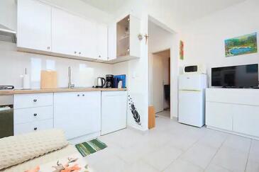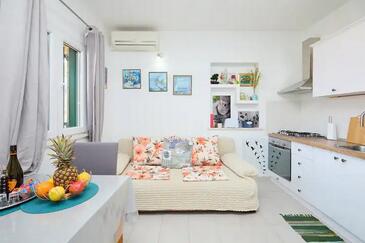 Ferienwohnung bietet Platz für 2 Gäste. Die Betten sind in Schlafzimmern, die es 1 gibt, innerhalb einer Gesamtfläche von 32m2, angeordnet. Die Gäste haben eine eigene Terrasse zur Verfügung, auf der sie in warmen Sommernächten genießen können. Das Apartment bietet Meerblick.