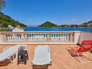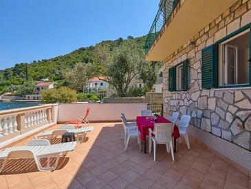 Ferienwohnung bietet Platz für 6 Gäste. Die Betten sind in Schlafzimmern, die es 3 gibt, innerhalb einer Gesamtfläche von 51m2, angeordnet. Die Gäste haben eine eigene Terrasse zur Verfügung, auf der sie in warmen Sommernächten genießen können. Das Apartment bietet Meerblick. Es ist erlaubt, Speisen auf dem Gemeinschafts-Grill vorzubereiten.