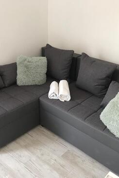Ferienwohnung bietet Platz für 10 Gäste. Die Betten sind in Schlafzimmern, die es 5 gibt, innerhalb einer Gesamtfläche von 78m2, angeordnet. Die Gäste haben eine eigene Terrasse zur Verfügung, auf der sie in warmen Sommernächten genießen können. Das Apartment bietet Meerblick. Es ist erlaubt, Speisen auf dem Gemeinschafts-Grill vorzubereiten.