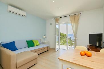 Ferienwohnung bietet Platz für 4 Gäste. Die Betten sind in Schlafzimmern, die es 2 gibt, innerhalb einer Gesamtfläche von 60m2, angeordnet. Die Gäste haben eine eigene Terrasse zur Verfügung, auf der sie in warmen Sommernächten genießen können. Das Apartment bietet Meerblick. Es ist erlaubt, Speisen auf dem Gemeinschafts-Grill vorzubereiten.