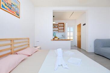 Studio bietet Platz für 2 Gäste. Die Betten sind in Schlafzimmern, die es 1 gibt, innerhalb einer Gesamtfläche von 17m2, angeordnet. Die Gäste haben einen eigenen Balkon zur Verfügung, auf der sie in warmen Sommernächten genießen können. Das Studio-Apartment bietet Meerblick. Es ist erlaubt, Speisen auf dem Gemeinschafts-Grill vorzubereiten. In der Unterkunftseinheit besteht die Möglichkeit des Mitbringens von Haustieren, und die Dienstleistung ist im Preis der Unterkunft enthalten.