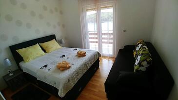 Ferienwohnung bietet Platz für 9 Gäste. Die Betten sind in Schlafzimmern, die es 3 gibt, innerhalb einer Gesamtfläche von 84m2, angeordnet. Die Gäste haben eine eigene Terrasse zur Verfügung, auf der sie in warmen Sommernächten genießen können. Das Apartment bietet Meerblick. Es ist erlaubt, Speisen auf dem Gemeinschafts-Grill vorzubereiten. In der Unterkunftseinheit besteht die Möglichkeit des Mitbringens von Haustieren gegen Aufpreis.