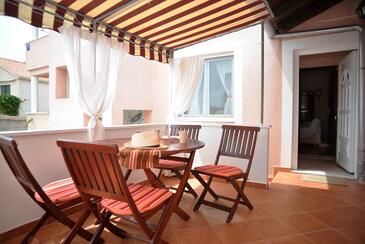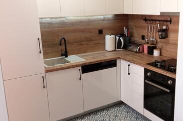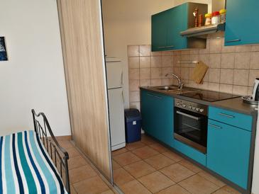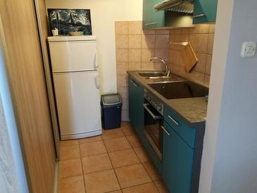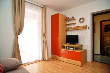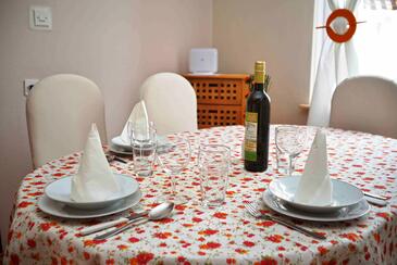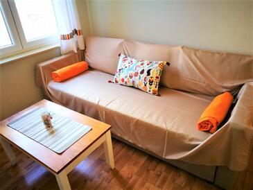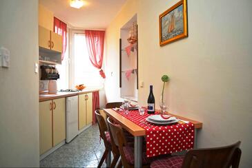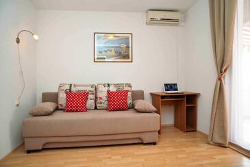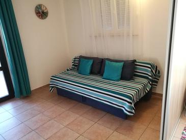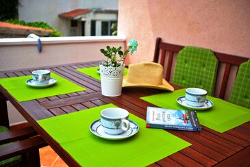 Ferienwohnung bietet Platz für 4 Gäste. Die Betten sind in Schlafzimmern, die es 2 gibt, innerhalb einer Gesamtfläche von 46m2, angeordnet. Die Gäste haben eine eigene Terrasse zur Verfügung, auf der sie in warmen Sommernächten genießen können. Das Apartment bietet Meerblick. Es ist erlaubt, Speisen auf dem Gemeinschafts-Grill vorzubereiten.