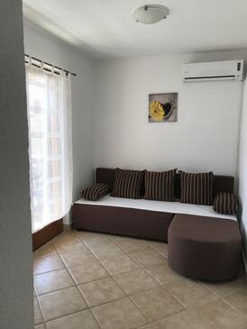 Ferienwohnung bietet Platz für 4 Gäste. Die Betten sind in Schlafzimmern, die es 2 gibt, innerhalb einer Gesamtfläche von 43m2, angeordnet. Die Gäste haben eine eigene Terrasse zur Verfügung, auf der sie in warmen Sommernächten genießen können. Es ist erlaubt, Speisen auf dem Gemeinschafts-Grill vorzubereiten.