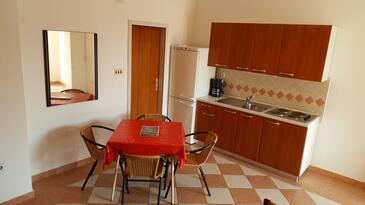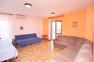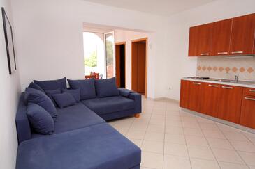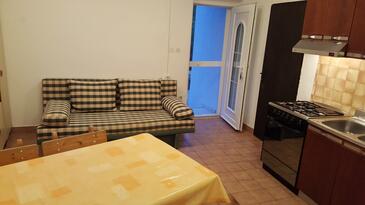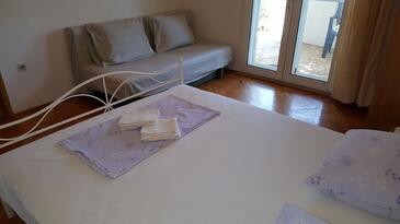 Ferienwohnung bietet Platz für 6 Gäste. Die Betten sind in Schlafzimmern, die es 2 gibt, und in Wohnzimmer, innerhalb einer Gesamtfläche von 57m2, angeordnet. Die Gäste haben eine eigene Terrasse zur Verfügung, auf der sie in warmen Sommernächten genießen können. Das Apartment bietet Meerblick. Es ist erlaubt, Speisen auf dem Gemeinschafts-Grill vorzubereiten.