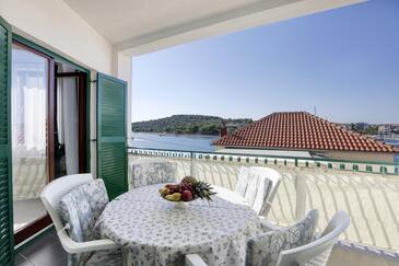 Ferienwohnung bietet Platz für 4 Gäste. Die Betten sind in Schlafzimmern, die es 2 gibt, innerhalb einer Gesamtfläche von 50m2, angeordnet. Die Gäste haben eine eigene Terrasse zur Verfügung, auf der sie in warmen Sommernächten genießen können. Das Apartment bietet Meerblick. Es ist erlaubt, Speisen auf dem Gemeinschafts-Grill vorzubereiten. In der Unterkunftseinheit besteht die Möglichkeit des Mitbringens von Haustieren gegen Aufpreis.