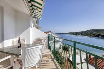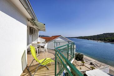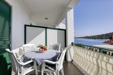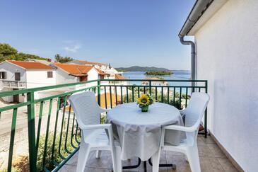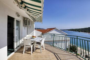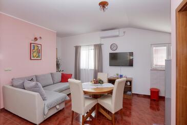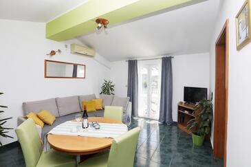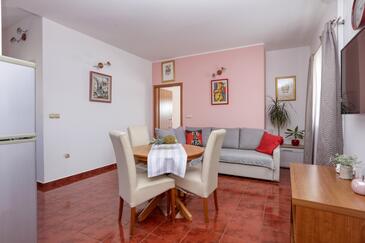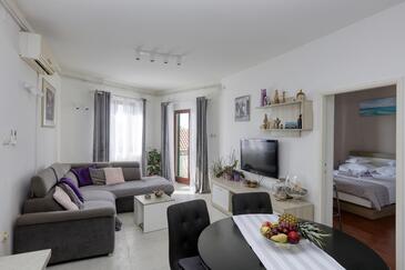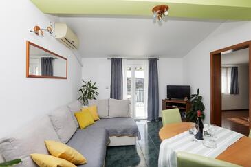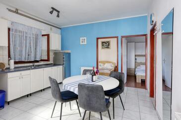 Ferienwohnung bietet Platz für 4 Gäste. Die Betten sind in Schlafzimmern, die es 2 gibt, innerhalb einer Gesamtfläche von 50m2, angeordnet. Die Gäste haben eine eigene Terrasse zur Verfügung, auf der sie in warmen Sommernächten genießen können. Das Apartment bietet Meerblick. Es ist erlaubt, Speisen auf dem Gemeinschafts-Grill vorzubereiten. In der Unterkunftseinheit besteht die Möglichkeit des Mitbringens von Haustieren gegen Aufpreis.