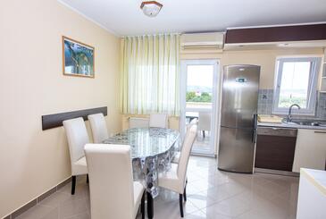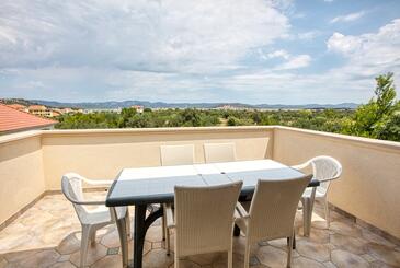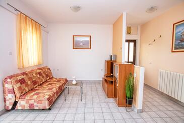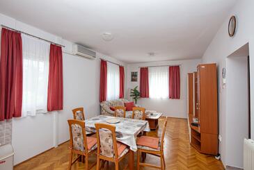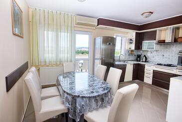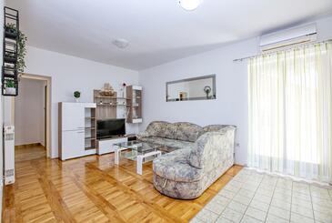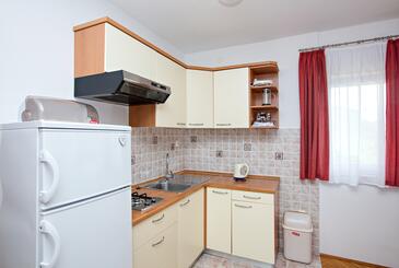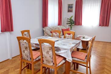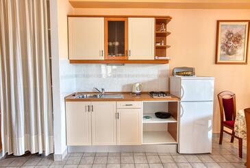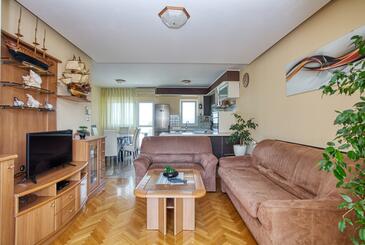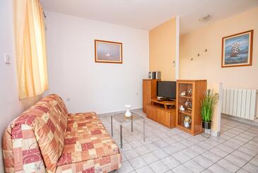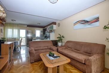 Ferienwohnung bietet Platz für 6 Gäste. Die Betten sind in Schlafzimmern, die es 2 gibt, und in Wohnzimmer, innerhalb einer Gesamtfläche von 66m2, angeordnet. Die Gäste haben eine eigene Terrasse zur Verfügung, auf der sie in warmen Sommernächten genießen können. Es ist erlaubt, Speisen auf dem Gemeinschafts-Grill vorzubereiten. In der Unterkunftseinheit besteht die Möglichkeit des Mitbringens von Haustieren gegen Aufpreis.