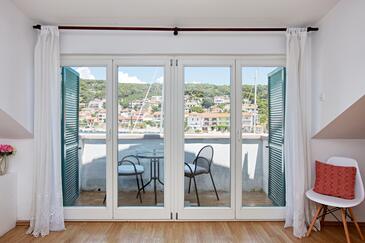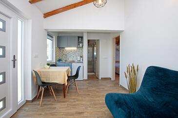 Ferienwohnung bietet Platz für 3 Gäste. Die Betten sind in Schlafzimmern, die es 1 gibt, und in Wohnzimmer, innerhalb einer Gesamtfläche von 42m2, angeordnet. Die Gäste haben einen eigenen Balkon zur Verfügung, auf der sie in warmen Sommernächten genießen können. Das Apartment bietet Meerblick. Es ist erlaubt, Speisen auf dem Gemeinschafts-Grill vorzubereiten. In der Unterkunftseinheit besteht die Möglichkeit des Mitbringens von Haustieren gegen Aufpreis.