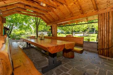 Haus bietet Platz für 6 Gäste. Die Betten sind in Schlafzimmern, die es 2 gibt, und in Wohnzimmer, innerhalb einer Gesamtfläche von 100m2, angeordnet. Die Gäste haben eine eigene Terrasse zur Verfügung, auf der sie in warmen Sommernächten genießen können. Für vollen Genuss und Entspannung gibt es einen privaten Grill für Gäste dieser Unterkunft. Während ihres Aufenthalts können sich Gäste im privaten Schwimmbad entspannen. In der Unterkunftseinheit besteht die Möglichkeit des Mitbringens von Haustieren, und die Dienstleistung ist im Preis der Unterkunft enthalten.