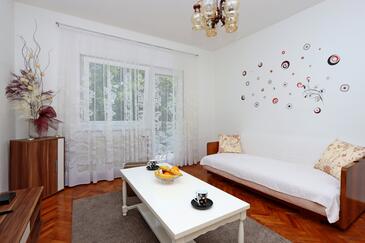 Ferienwohnung bietet Platz für 6 Gäste. Die Betten sind in Schlafzimmern, die es 2 gibt, und in Wohnzimmer, innerhalb einer Gesamtfläche von 71m2, angeordnet. Die Gäste haben eine eigene Terrasse zur Verfügung, auf der sie in warmen Sommernächten genießen können. Das Apartment bietet Meerblick. Es ist erlaubt, Speisen auf dem Gemeinschafts-Grill vorzubereiten. In der Unterkunftseinheit besteht die Möglichkeit des Mitbringens von Haustieren gegen Aufpreis.
