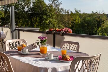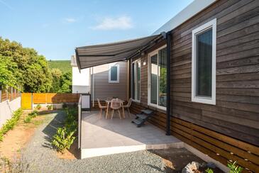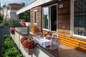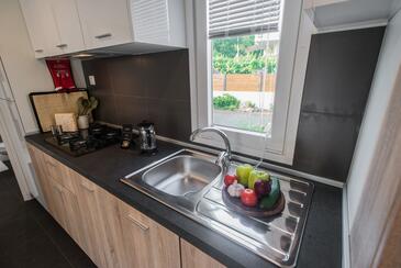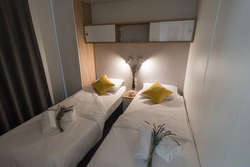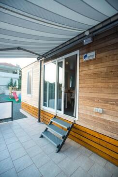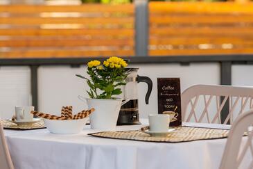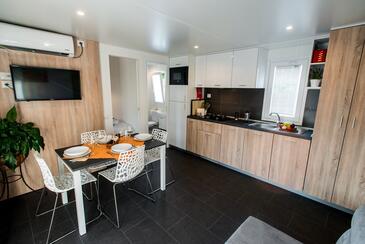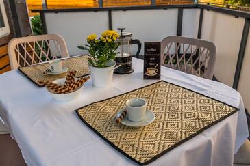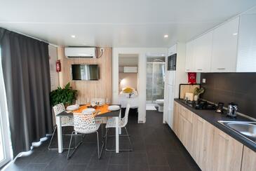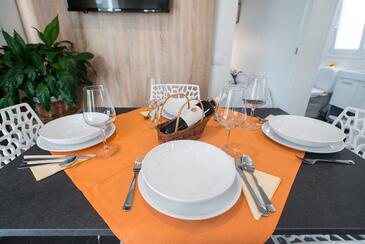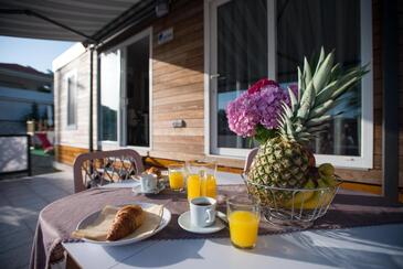 Ferienwohnung bietet Platz für 5 Gäste. Die Betten sind in Schlafzimmern, die es 2 gibt, und in Wohnzimmer, innerhalb einer Gesamtfläche von 34m2, angeordnet. Die Gäste haben eine eigene Terrasse zur Verfügung, auf der sie in warmen Sommernächten genießen können. Es ist erlaubt, Speisen auf dem Gemeinschafts-Grill vorzubereiten. Während ihres Aufenthalts können Gäste das gemeinsam zur Nutzung stehende Schwimmbad benutzen.