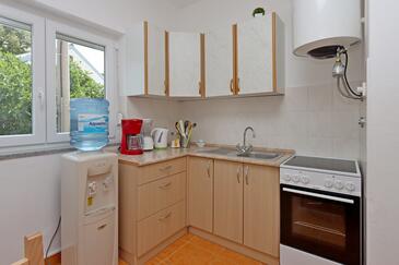 Haus bietet Platz für 4 Gäste. Die Betten sind in Schlafzimmern, die es 2 gibt, innerhalb einer Gesamtfläche von 66m2, angeordnet. Die Gäste haben einen eigenen Balkon zur Verfügung, auf der sie in warmen Sommernächten genießen können. Das Haus bietet Meerblick. Es ist erlaubt, Speisen auf dem Gemeinschafts-Grill vorzubereiten. In der Unterkunftseinheit besteht die Möglichkeit des Mitbringens von Haustieren, und die Dienstleistung ist im Preis der Unterkunft enthalten.