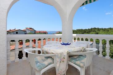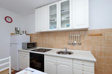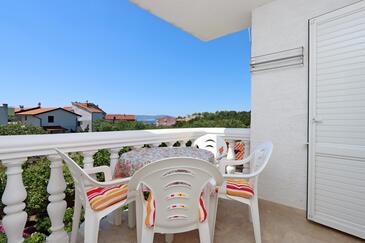 Ferienwohnung bietet Platz für 4 Gäste. Die Betten sind in Schlafzimmern, die es 2 gibt, innerhalb einer Gesamtfläche von 50m2, angeordnet. Die Gäste haben einen eigenen Balkon zur Verfügung, auf der sie in warmen Sommernächten genießen können. Das Apartment bietet Meerblick. Es ist erlaubt, Speisen auf dem Gemeinschafts-Grill vorzubereiten.