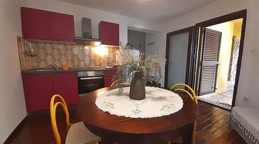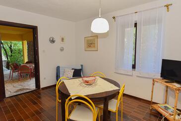 Ferienwohnung bietet Platz für 5 Gäste. Die Betten sind in Schlafzimmern, die es 2 gibt, innerhalb einer Gesamtfläche von 43m2, angeordnet. Die Gäste haben eine eigene Terrasse zur Verfügung, auf der sie in warmen Sommernächten genießen können.
