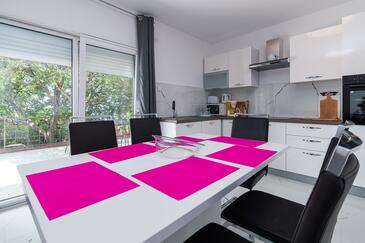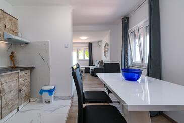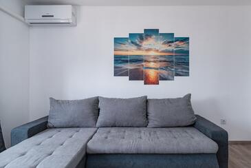 Ferienwohnung bietet Platz für 4 Gäste. Die Betten sind in Schlafzimmern, die es 1 gibt, und in Wohnzimmer, innerhalb einer Gesamtfläche von 48m2, angeordnet. Die Gäste haben einen eigenen Balkon zur Verfügung, auf der sie in warmen Sommernächten genießen können. Das Apartment bietet Meerblick. Es ist erlaubt, Speisen auf dem Gemeinschafts-Grill vorzubereiten.