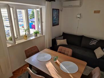 Ferienwohnung bietet Platz für 4 Gäste. Die Betten sind in Schlafzimmern, die es 1 gibt, und in Wohnzimmer, innerhalb einer Gesamtfläche von 25m2, angeordnet. Die Gäste haben eine eigene Terrasse zur Verfügung, auf der sie in warmen Sommernächten genießen können. Das Apartment bietet Meerblick. Für vollen Genuss und Entspannung gibt es einen privaten Grill für Gäste dieser Unterkunft. In der Unterkunftseinheit besteht die Möglichkeit des Mitbringens von Haustieren gegen Aufpreis.