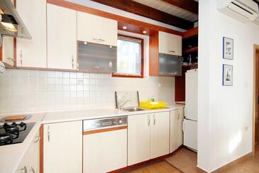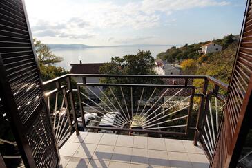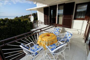Ferienwohnung bietet Platz für 4 Gäste. Die Betten sind in Schlafzimmern, die es 2 gibt, innerhalb einer Gesamtfläche von 65m2, angeordnet. Die Gäste haben eine eigene Terrasse zur Verfügung, auf der sie in warmen Sommernächten genießen können. Das Apartment bietet Meerblick. Es ist erlaubt, Speisen auf dem Gemeinschafts-Grill vorzubereiten.
