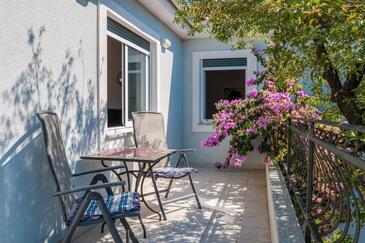 Ferienwohnung bietet Platz für 4 Gäste. Die Betten sind in Schlafzimmern, die es 2 gibt, innerhalb einer Gesamtfläche von 58m2, angeordnet. Die Gäste haben eine eigene Terrasse zur Verfügung, auf der sie in warmen Sommernächten genießen können. Das Apartment bietet Meerblick. Für vollen Genuss und Entspannung gibt es einen privaten Grill für Gäste dieser Unterkunft.