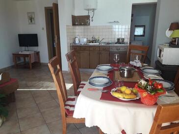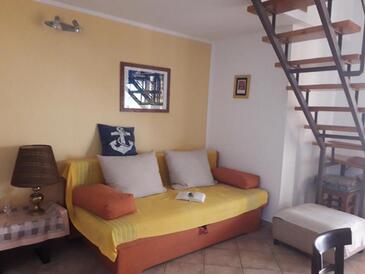 Ferienwohnung bietet Platz für 5 Gäste. Die Betten sind in Schlafzimmern, die es 2 gibt, und in Wohnzimmer, innerhalb einer Gesamtfläche von 50m2, angeordnet. Die Gäste haben eine eigene Terrasse zur Verfügung, auf der sie in warmen Sommernächten genießen können. Das Apartment bietet Meerblick. In der Unterkunftseinheit besteht die Möglichkeit des Mitbringens von Haustieren gegen Aufpreis.