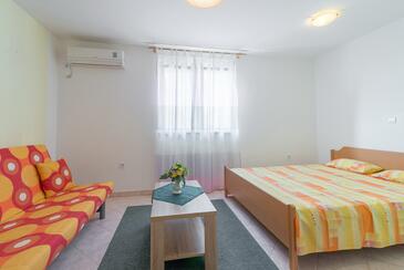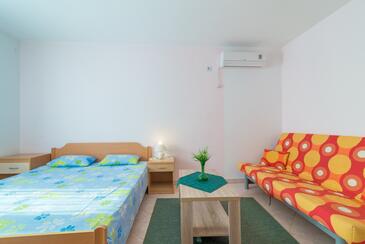 Ferienwohnung bietet Platz für 8 Gäste. Die Betten sind in Schlafzimmern, die es 4 gibt, innerhalb einer Gesamtfläche von 89m2, angeordnet. Die Gäste haben eine eigene Terrasse zur Verfügung, auf der sie in warmen Sommernächten genießen können. Das Apartment bietet Meerblick. Es ist erlaubt, Speisen auf dem Gemeinschafts-Grill vorzubereiten.