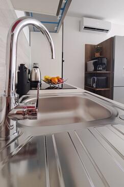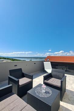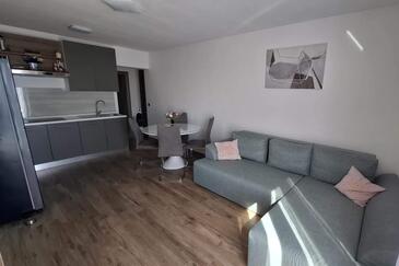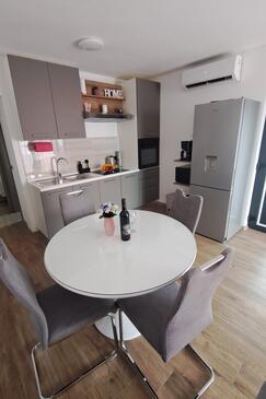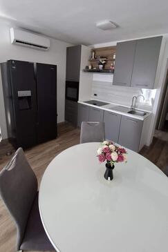 Haus bietet Platz für 16 Gäste. Die Betten sind in Schlafzimmern, die es 4 gibt, und in Wohnzimmer, innerhalb einer Gesamtfläche von 144m2, angeordnet. Die Gäste haben einen eigenen Balkon zur Verfügung, auf der sie in warmen Sommernächten genießen können. Das Haus bietet Meerblick. Für vollen Genuss und Entspannung gibt es einen privaten Grill für Gäste dieser Unterkunft. Während ihres Aufenthalts können Gäste das gemeinsam zur Nutzung stehende Schwimmbad benutzen. In der Unterkunftseinheit besteht die Möglichkeit des Mitbringens von Haustieren gegen Aufpreis. Räume der gebuchten Unterkunftseinheit werden nicht in eine Ganze verbunden.
