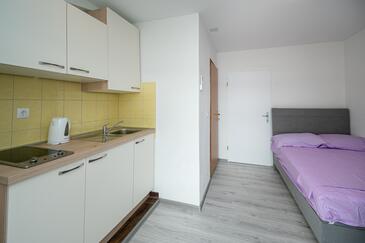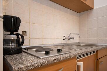 Ferienwohnung bietet Platz für 5 Gäste. Die Betten sind in Schlafzimmern, die es 2 gibt, und in Wohnzimmer, innerhalb einer Gesamtfläche von 62m2, angeordnet. Die Gäste haben einen eigenen Balkon zur Verfügung, auf der sie in warmen Sommernächten genießen können. Das Apartment bietet Meerblick. Es ist erlaubt, Speisen auf dem Gemeinschafts-Grill vorzubereiten.