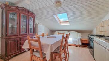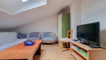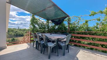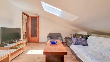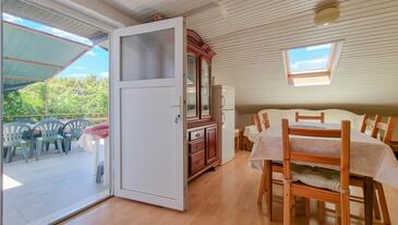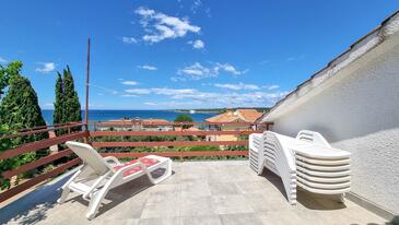 Ferienwohnung bietet Platz für 8 Gäste. Die Betten sind in Schlafzimmern, die es 4 gibt, innerhalb einer Gesamtfläche von 75m2, angeordnet. Die Gäste haben eine eigene Terrasse zur Verfügung, auf der sie in warmen Sommernächten genießen können. Das Apartment bietet Meerblick. Es ist erlaubt, Speisen auf dem Gemeinschafts-Grill vorzubereiten.