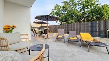 Haus bietet Platz für 6 Gäste. Die Betten sind in Schlafzimmern, die es 3 gibt, innerhalb einer Gesamtfläche von 145m2, angeordnet. Die Gäste haben eine eigene Terrasse zur Verfügung, auf der sie in warmen Sommernächten genießen können. Es ist erlaubt, Speisen auf dem Gemeinschafts-Grill vorzubereiten. Während ihres Aufenthalts können sich Gäste im privaten Schwimmbad entspannen. In der Unterkunftseinheit besteht die Möglichkeit des Mitbringens von Haustieren gegen Aufpreis.