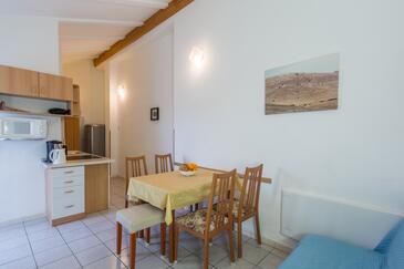 Ferienwohnung bietet Platz für 4 Gäste. Die Betten sind in Schlafzimmern, die es 1 gibt, und in Wohnzimmer, innerhalb einer Gesamtfläche von 30m2, angeordnet. Die Gäste haben eine eigene Terrasse zur Verfügung, auf der sie in warmen Sommernächten genießen können. Das Apartment bietet Meerblick. Für vollen Genuss und Entspannung gibt es einen privaten Grill für Gäste dieser Unterkunft.