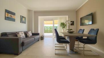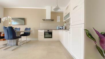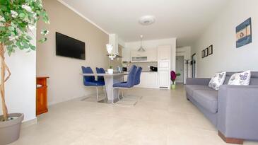 Ferienwohnung bietet Platz für 4 Gäste. Die Betten sind in Schlafzimmern, die es 1 gibt, und in Wohnzimmer, innerhalb einer Gesamtfläche von 56m2, angeordnet. Die Gäste haben eine eigene Terrasse zur Verfügung, auf der sie in warmen Sommernächten genießen können.