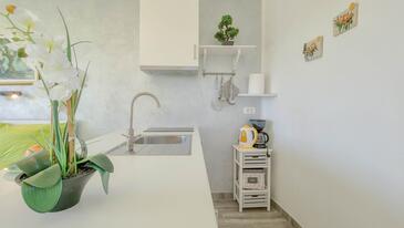 Ferienwohnung bietet Platz für 4 Gäste. Die Betten sind in Schlafzimmern, die es 1 gibt, und in Wohnzimmer, innerhalb einer Gesamtfläche von 27m2, angeordnet. Die Gäste haben eine eigene Terrasse zur Verfügung, auf der sie in warmen Sommernächten genießen können. Das Apartment bietet Meerblick. In der Unterkunftseinheit besteht die Möglichkeit des Mitbringens von Haustieren gegen Aufpreis.